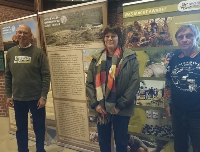 Einen atemberaubenden Vortrag über ganzheitlichen Biodiversitätsschutz in Simbabwe erlebten Mitglieder der DSG und zahlreiche Besucher am Montag, den 22.9.25 in Münster. Anlässlich des Welttags des Nashorns informierte Dr. Martin Kessler, Vorsitzender der Organisation AWARE Germany (https://www.aware-germany.de) und DSG-Mitglied, auf Einladung der DSG über die Arbeit von AWARE in Simbabwe. In den Nationalparks Chipinge und Lake Kyle unterstützt AWARE die Arbeit der Wildhüter durch verbesserte Ausrüstung, Funk, Wohnmöglichkeiten in den Camps und eine gute Ausbildung. In beiden Parks führt AWARE die Enthornung der Nashörner durch. Ein wichtiger Baustein zum Schutz der Tiere – angesichts eines Kilopreises von bis zu 100.000 US$ für das Horn.