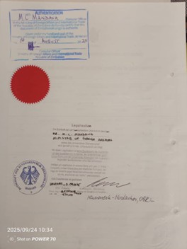 Die DSG stellte den Kontakt zum Rechtsanwalt Simbarashe A. Murondoti her, der den ganzen Prozess in die Wege leitete. Ende September wurde die Urkunde zugestellt. Die DSG freut sich über das Happyend und wünscht dem zukünftigen Ehepaar alles Gute.