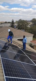 Bonmache Mazvi (hier bei der Montage auf einem Dach) ist in der Praxisphase. Er hat gerade einen Förderpreis von YA über 1000 US$ gewonnen für innovative Ideen in der Solartechnik. Seine Praktikumsfirma durfte er auf der großen Landwirtschaftsshow in Harare vertreten und nimmt auf Vorschlag von YA an verschiedenen Förderworkshops teil.